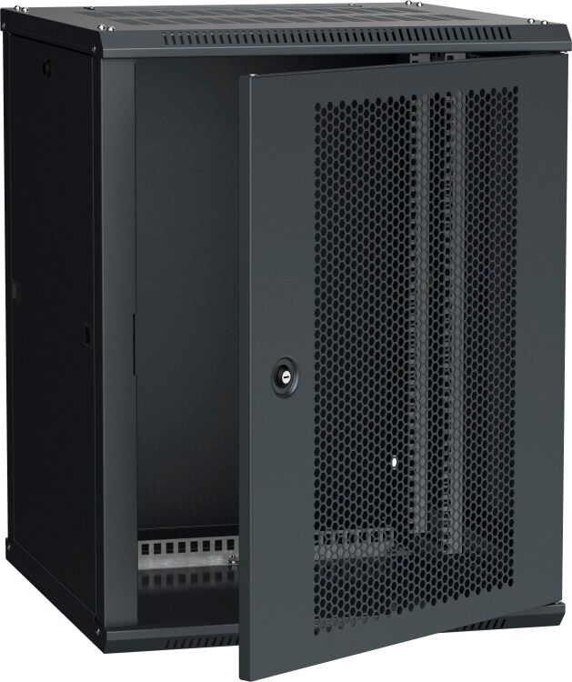 Шкаф 15U 600x600 мм перфорированная дверь RAL9005 ITK - это настенный корпус из стали с перфорированной дверью для установки 19-дюймового оборудования в помещениях с контролируемым микроклиматом. Шкаф 15U 600x600 мм перфорированная дверь RAL9005 ITK относится к серии LINEA W и предназначен для компактного размещения телекоммуникационных устройств, коммутаторов, серверов и других модульных систем.