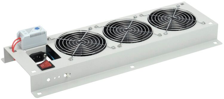 Панель вентиляторная с выключателем и термостатом 3 модуля серая совместима исключительно с шкафами серии LINEA W и LINEA N. Установка выполняется путём фиксации винтами - требуется доступ к задней стенке шкафа. Разъём C14 позволяет подключить внешний кабель питания, однако сам кабель в комплект не входит - его необходимо приобрести отдельно. Выключатель с индикацией даёт возможность вручную включать/выключать вентиляторы без отключения питания всей системы.
