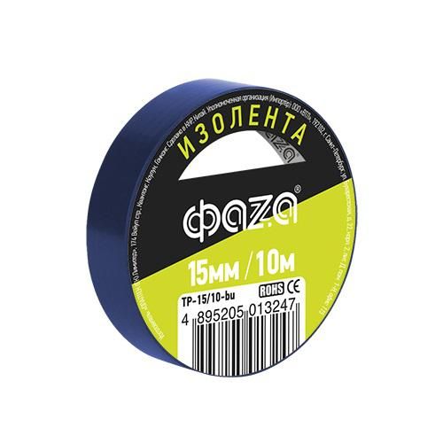 Изолента 15/10 синяя TP-15/10 new ФАЗА ФАZA (ФАЗА) - это изоляционная лента, предназначенная для использования в быту и на производстве при проведении электротехнических работ.