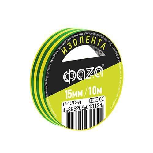 Изолента ПВХ 15 мм * 10 м желто-зеленая от бренда ФАZA (артикул 5013124) - самоклеящийся изоляционный материал на основе поливинилхлорида, предназначенный для защиты токоведущих соединений в электротехнических работах. Цвет соответствует международному стандарту заземления, что делает её удобной для идентификации проводов.
