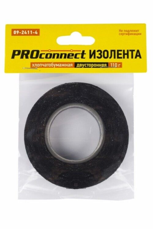 Изолента хлопчатобумажная Proconnect 2-ПОЛ - это двухсторонняя изоляционная лента на хлопковой основе, предназначенная для надёжной электрической изоляции и механической защиты проводов и соединений в условиях умеренного климата. Артикулы etm09-2411-4 и 09-2411-4 соответствуют ГОСТ 2162-97 и подходят для работ в электромонтаже, ремонте оборудования и сборке панелей.