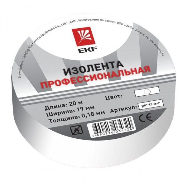Изолента EKF класс А (артикул plc-iz-a-w) - профессиональный расходный материал на базе самозатухающего ПВХ для надежной электроизоляции, маркировки и защиты проводов в условиях повышенной нагрузки и внешних воздействий.