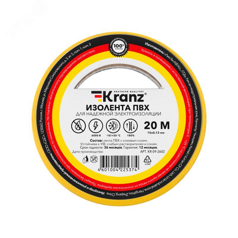 | Изолента ПВХ KRANZ 0.13х15 мм, 20 м, желтая 10шт - KR-09-2602 | 24.02.2026 | Под заказ | 52,26 ₽ | рул. | от 30 дней |