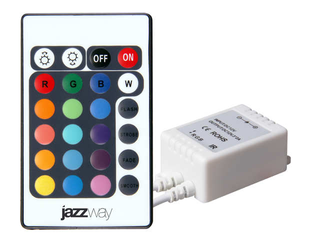 Контроллер Jazzway PLS 3327385 предназначен для управления светодиодными лентами RGB на 12 В, обеспечивая изменение цвета, яркости и эффектов освещения через инфракрасный пульт. Подходит для внутренней установки в помещениях с невысокой влажностью.