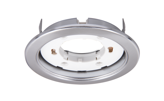 Светильник точечный JazzWay PGX53 10639.7 совместим только с лампами типа PLED-GX53. Для работы необходима лампа с таким же цоколем - другие типы (GU10, G9 и др.) не подходят. Монтаж осуществляется через встроенную монтажную скобу, которая фиксирует прибор в подготовленном отверстии диаметром 106 мм. Глубина корпуса всего 39 мм позволяет использовать его там, где недостаточно места для обычных моделей. Перед установкой проверьте, что толщина потолка больше 39 мм, чтобы полностью поместить светильник без выпирания.
