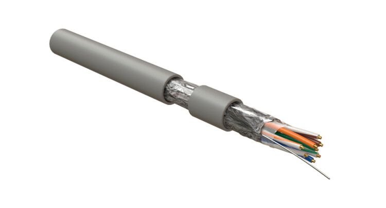 - Тип экранирования: F/UTP (фольга + неэкранированные пары) - каждый проводник изолирован, вся группа покрыта общей фольгой