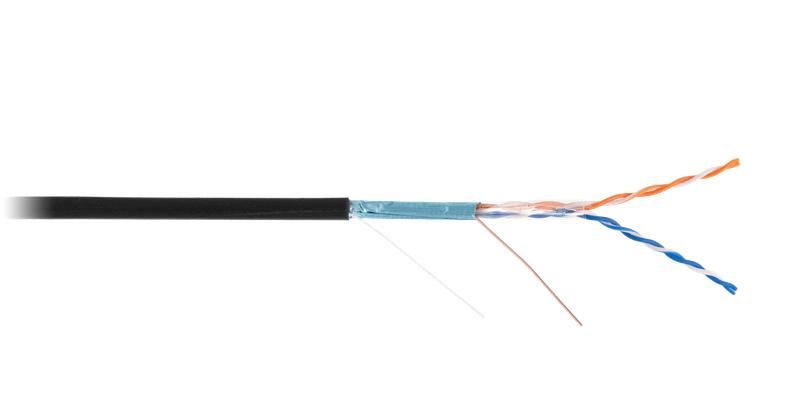 Кабель F/UTP категории 5 (класс D) 2 пары 100 МГц от NETLAN с артикулом ec-uf002-5-pe-bk - двухпарный экранированный кабель из чистой меди для прокладки вне помещений, рассчитанный на работу при температуре до –40 C. Подходит для передачи данных до 100 Мбит/с и аналоговых сигналов в условиях открытого воздуха.