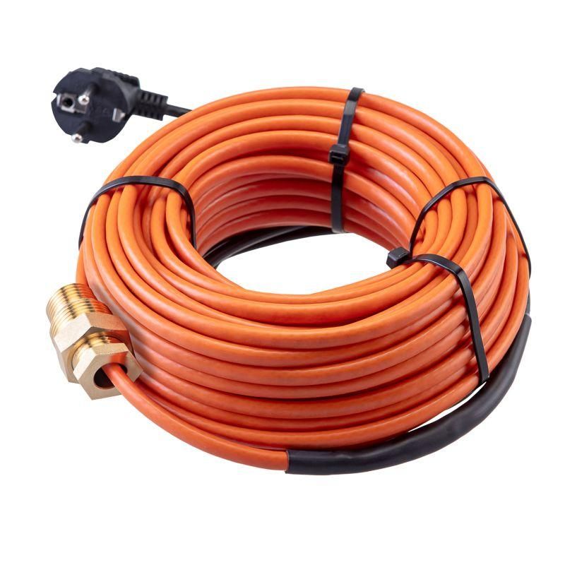 Кабель греющий саморегулирующийся 10 ККНС 2ЛПп-ЭЛ 65/85 поставляется с готовым питанием: питающий кабель оканчивается евровилкой - достаточно включить в розетку 220–230 В. Для монтажа внутри трубы предусмотрен сальниковый узел - он герметично выводит кабель через стенку трубы, исключая протечки. На поверхности трубы кабель фиксируют алюминиевым скотчем или термостойкой лентой - это усиливает передачу тепла и защищает от механических повреждений. Минимальный радиус изгиба - 40 мм; нельзя допускать резких перегибов. При намотке витками соблюдайте этот параметр, чтобы не повредить внутреннюю структуру кабеля.