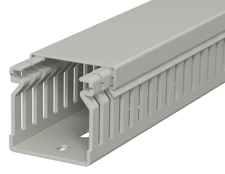 Кабельный канал распределительный 40x40x2000 мм (ПВХ, серый, RAL7030) от OBO BETTERMANN - это жесткий профиль из ПВХ с перфорацией и съёмной крышкой, предназначенный для прокладки и защиты проводов и кабелей внутри помещений. Артикул lk4 40040 соответствует серии LK4, которая обеспечивает надёжную фиксацию и удобство монтажа в условиях промышленного и коммерческого оборудования.