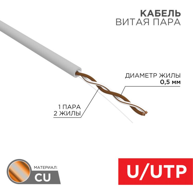 Кабель витая пара U/UTP кат.5E 1х2х24AWG solid CU PVC сер. (м) Rexant 01-0002 MEET