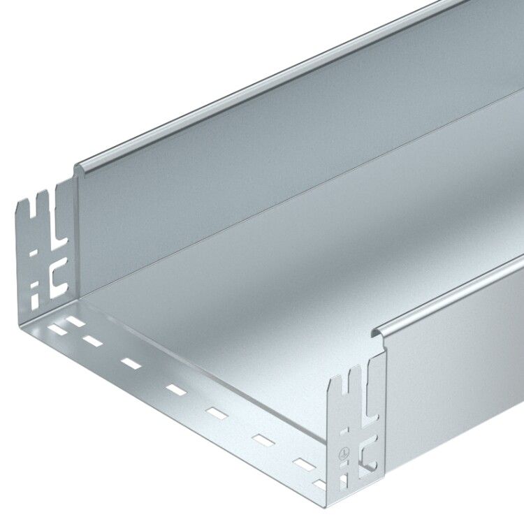 Кабельный лоток неперфорированный 110x100x3050 мм горячий цинк от OBO BETTERMANN (артикул 6059853) предназначен для прокладки силовых и управляющих кабелей в промышленных условиях. Его прочная стальная конструкция с горячим цинкованием обеспечивает долговечность даже в агрессивных средах, а интегрированный соединитель ускоряет сборку трасс.