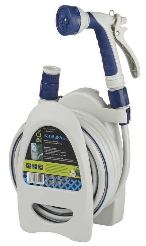 Катушка компактная с ручкой для переноса и хранения шланга + шланг 9.5мм (3/8)х10м пистолетом-распылителем 7 реж. пластик. коннекторами (1/6) Green Apple Б0003110 ЭРА
