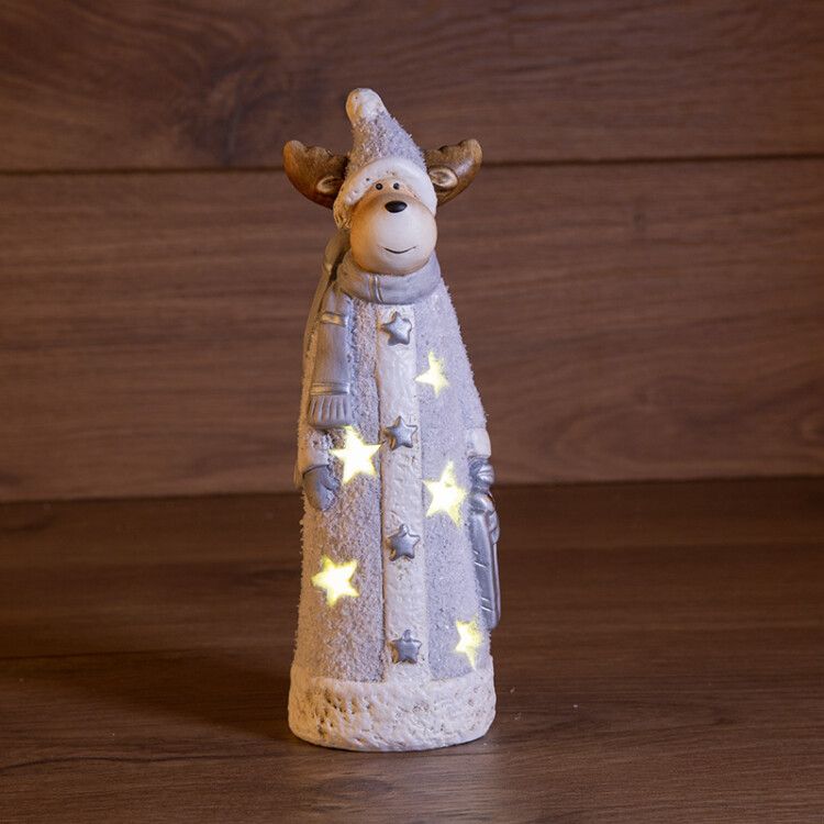 - Милый дизайн: Фигурка олененка с шарфом обладает проработанными деталями и меховым кафтаном с пятью звездочками, из которых исходит теплый белый свет.