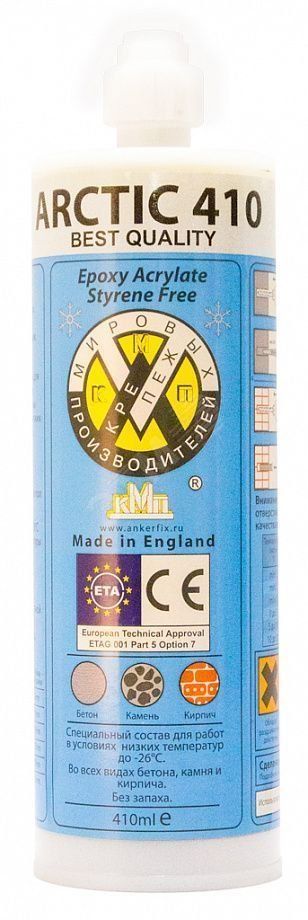 Химический анкер 300 мл эпокси-акрилат от КМП - двухкомпонентный состав на основе эпоксидно-акрилатной смолы, предназначенный для надёжного крепления резьбовых стержней и арматуры в бетоне, камне и других твёрдых основаниях. Артикул arctic 300 обеспечивает высокую прочность соединения без механического расширения, что особенно важно при ограниченном расстоянии между креплениями.