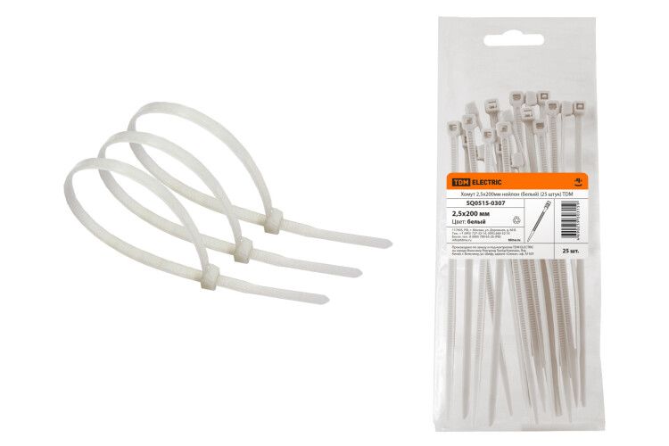 Хомут 2,5х200мм нейлон (белый) (25 штук) | SQ0515-0307 TDM