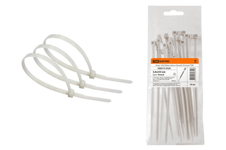 Хомут 4,8х250мм нейлон (белый) (50 штук) | SQ0515-0320 TDM