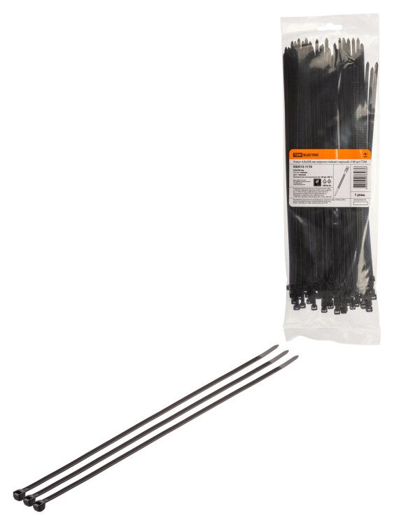 Хомут кабельный 4,8х300 мм морозостойкий черный (100 шт) от TDM ELECTRIC - надежное решение для фиксации кабельных пучков в условиях экстремально низких температур, подходящее как для промышленной установки, так и для наружного монтажа.