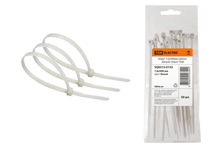 Хомут 7,6х500мм нейлон (белый) (50шт) | SQ0515-0155 TDM