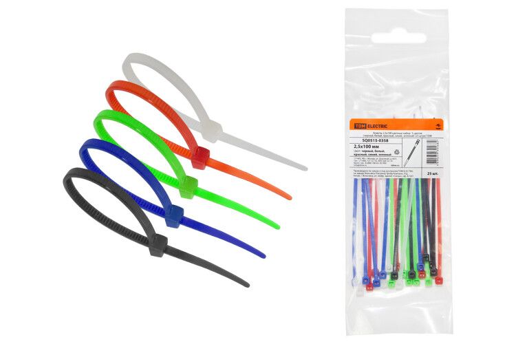 Хомуты 2,5х100 цветные набор 5 цветов (черный, белый, красный, синий, зеленый) (25 штук) | SQ0515-0358 TDM
