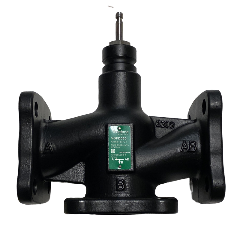 Клапан регулирующий 3-ход разд фланц PN16 DN50 31 м³/ч -20…+130C от Systeme Electric - устройство для точного распределения потока теплоносителя между двумя ответвлениями системы отопления или ГВС. Артикул vgfd050 предназначен для систем с переменной нагрузкой, где важно сохранять заданную температуру на выходе.