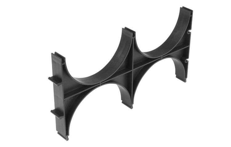 Кластер двойной двухсторонний для двустенных труб диаметр 110 мм используется для одновременного крепления двух труб одинакового диаметра - например, при устройстве дренажных систем, ливневок или сбора сточных вод. Применяется исключительно при открытой установке, когда трубы прокладываются на поверхности земли, вдоль стен или на опорах. Подходит для гибких и жестких двустенных гофрированных труб с наружным диаметром 110 мм.