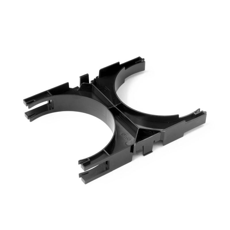 Кластер для двустенных труб d160 мм наборный, двухсторонний используется для упорядоченного монтажа пары труб с постоянным зазором между ними. Подходит для прокладки в помещениях, на объектах с ограниченным пространством, где требуется избежать переплетения и случайного смещения труб. Применяется в системах вентиляции, канализации, прокладке кабельных трасс внутри стен или под потолком.