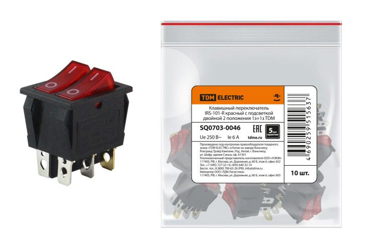 | Клавишный переключатель IRS-101-R красный с подсветкой двойной 2 положения 1з+1з | SQ0703-0046 | TDM | 06.03.2026 | Под заказ | 81,65 ₽ | шт. | от 30 дней |