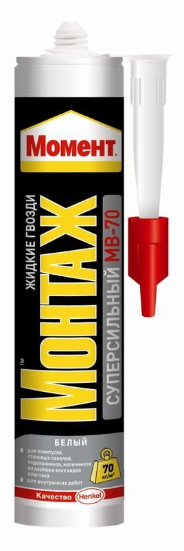 Клей монтажный суперсильный МВ-70 предназначен для фиксации массивных деталей в условиях постоянной нагрузки. Он применяется там, где важна прочность соединения, а не просто временная адгезия. Подходит для работы с материалами, которые сложно закрепить механическими способами - например, при установке декоративных панелей, багетов, крепления труб, профилей, плитки или элементов из пенополистирола.