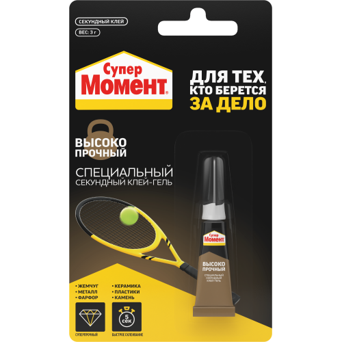 Клей Момент высокопрочный 3 г - быстротвердеющий состав для надёжного соединения твёрдых материалов, таких как металл, пластик, керамика и резина. Подходит для мелкого ремонта, сборки деталей и фixации элементов в условиях ограниченного доступа.