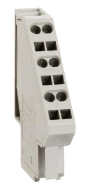Эта клемма используется исключительно для подключения вспомогательных цепей - сигналов состояния, удалённого управления или блокировок - к стационарным автоматическим выключателям системы SystemePact ACB2. Она передаёт информацию о положении главного контакта (включен/выключен) на внешние устройства: контроллеры, реле, индикаторы, пульты управления. Применяется в системах автоматизации промышленного оборудования, где требуется контроль работы силовой цепи без прямого доступа к основному току.