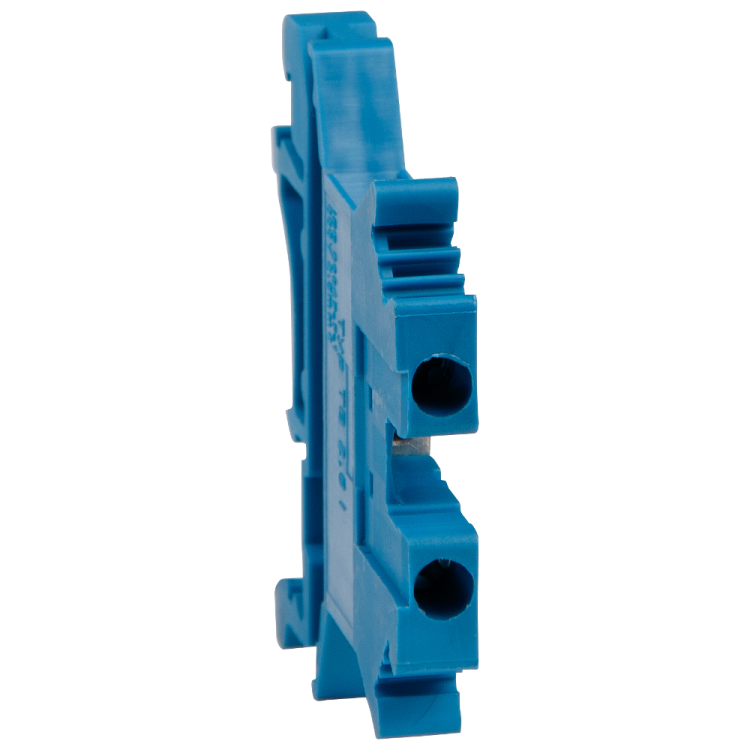 Клемма TB-2,5-I-BU-24A-(0,5-4) синяя совместима со всеми стандартными DIN-рейками шириной 35 мм. Установка выполняется защёлкиванием - достаточно плотно придавить клемму к рейке до характерного щелчка. Для фиксации провода используйте винтовой зажим: зачистите жилу на 8–10 мм, вставьте и затяните винт усилием, достаточным для надёжного контакта, но без перекручивания. Возможна установка замыкающих пластин для соединения нескольких клемм в цепь - это позволяет передавать ток через несколько точек без внешних перемычек.