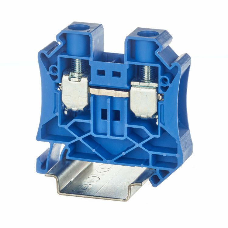 Клемма проходная , винтовой зажим, 2 точки подключения, 16 кв.мм, синяя - TUR-16-BU ДКС
