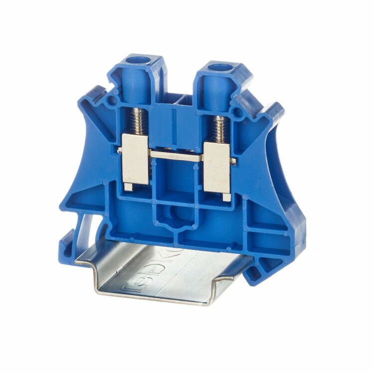 Клемма проходная, винтовой зажим, 2 точки подключения, 6 кв.мм, синяя от DKC (ДКС) - надёжное решение для последовательного соединения проводов на DIN-рейке. Артикул tur-6-bu подходит для слаботочных и силовых цепей с током до 41 А.