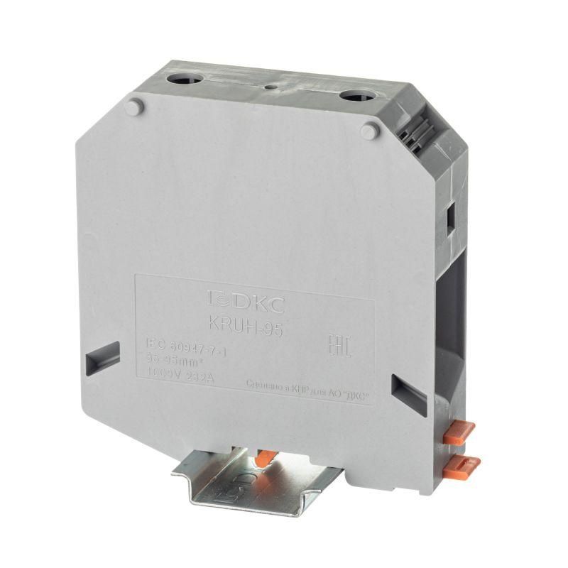 Клемма проходная DKC (ДКС) с винтовым зажимом, артикул kruh-95 - надёжное решение для передачи тока между двумя проводниками с сечением до 95 мм2. Устанавливается на DIN-рейку, подходит для силовых цепей в распределительных щитах, промышленном оборудовании и системах автоматизации.