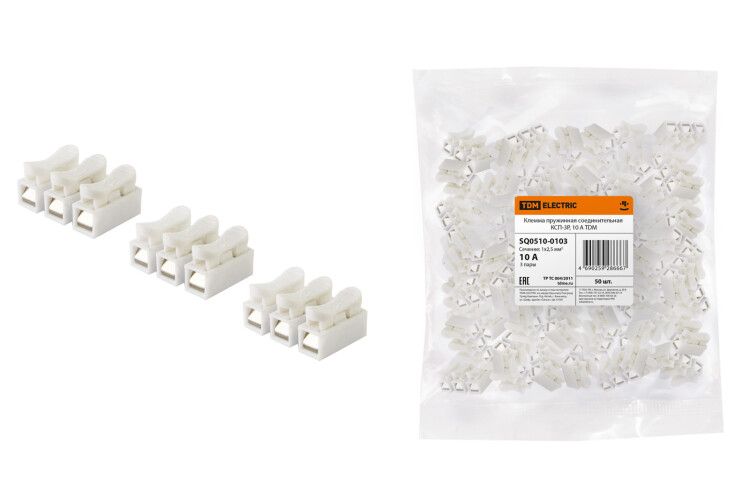 Клемма пружинная соединительная КСП-3P, 10 A | SQ0510-0103 TDM