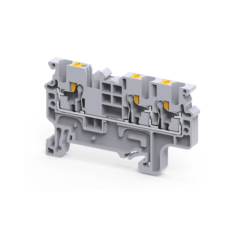 Клемма с 3-мя контактами push-in 2,5 кв.мм серая предназначена для создания электрических соединений в распределительных шкафах и щитах систем автоматизации, управления, освещения и промышленного оборудования. Применяется там, где требуется высокая плотность подключений и ускоренная сборка - например, в контроллерах, модулях ввода-вывода, реле и других устройствах САУ. Электрическая связь между всеми тремя контактами позволяет использовать её как распределительную точку для фазы, нуля или сигнала.