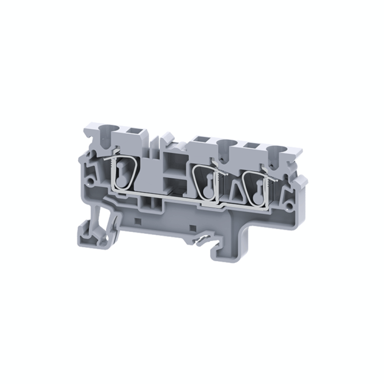 - Клемма с тремя контактами пружинная 4 кв.мм СХ-4-TRIPLET-I серая - идеальный выбор для компактных решений, где важны скорость и надёжность, а не частая модификация схемы