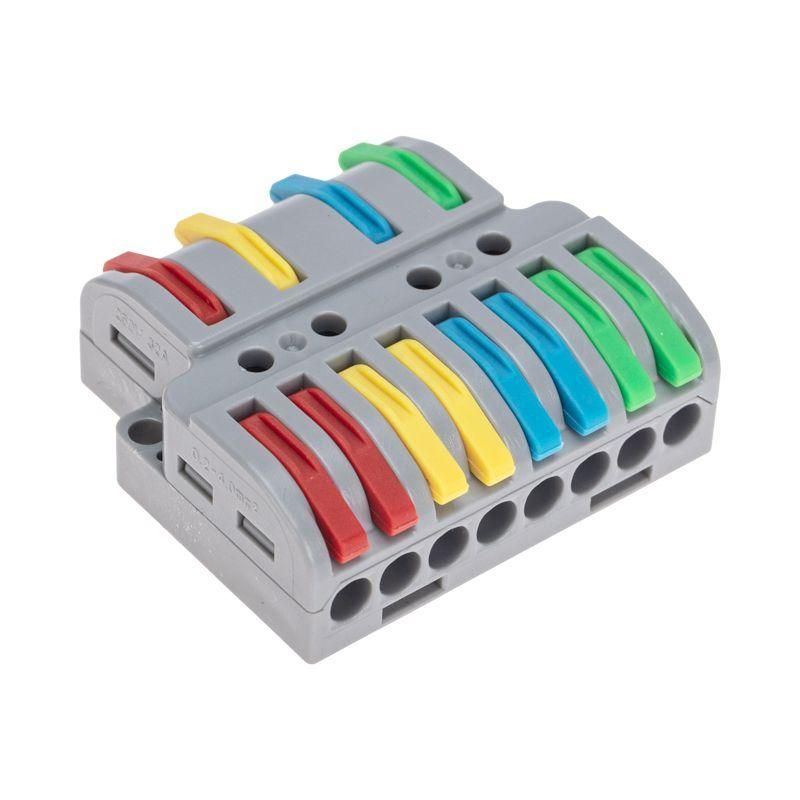 Клемма СМК 4х2 проходная разветвительная 4 полюса с монтажной площадкой (1 ввод, 2 вывода на полюс) от REXANT - надёжное решение для распределения четырёх проводов на два выходных контура. Артикул 07-5247 подходит для монтажа в распределительных шкафах, на пультах управления и в промышленном оборудовании.