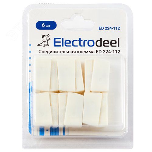 Клемма соединительная 2-контактная (6шт) Elеctrodeel. Диапазон сечений 0,5-2,5 мм2. Номинальный ток/напряжение: 24А/400В. Упаковка: блистер. - ED 224-112-b6 ELECTRODEEL