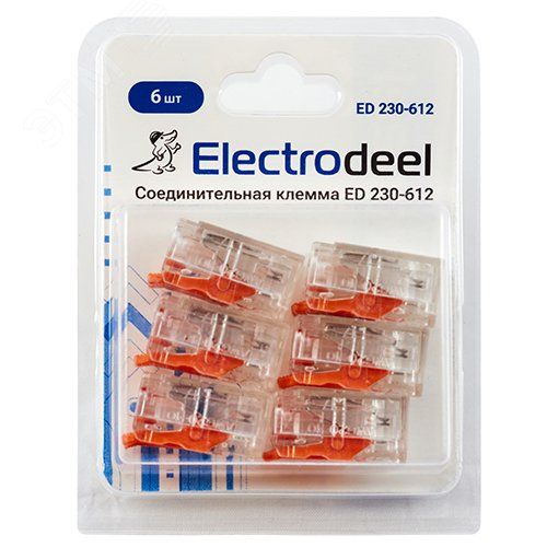 Клемма соединительная 2-контактная (6шт) Elеctrodeel. Диапазон сечений 0,5-6,0 мм2. Номинальный ток/напряжение: 41А/450В. Упаковка: блистер. - ED 230-612-b6 ELECTRODEEL