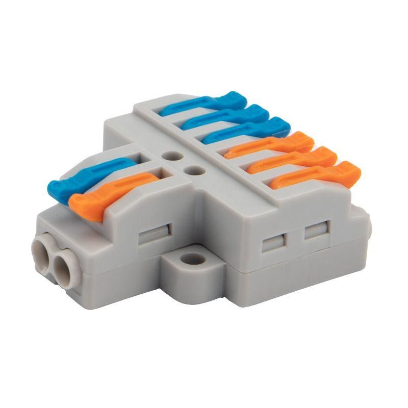 Клемма строительно-монтажная СМК проходная разветвительная 2х3 2п с монтажной площадкой 1 ввод 3 вывода на полюс (уп.50шт) Rexant 07-5234 MEET