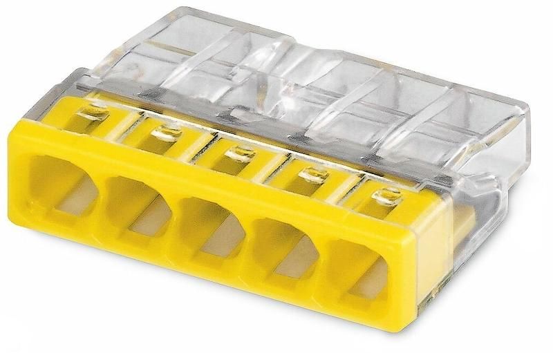 - Количество зажимов: 5 - позволяет соединить до пяти проводов в одном модуле, снижает количество необходимых компонентов.