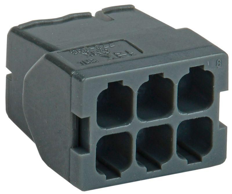 - Шесть зажимов в одном корпусе - меньше точек соединений, проще организовать разводку