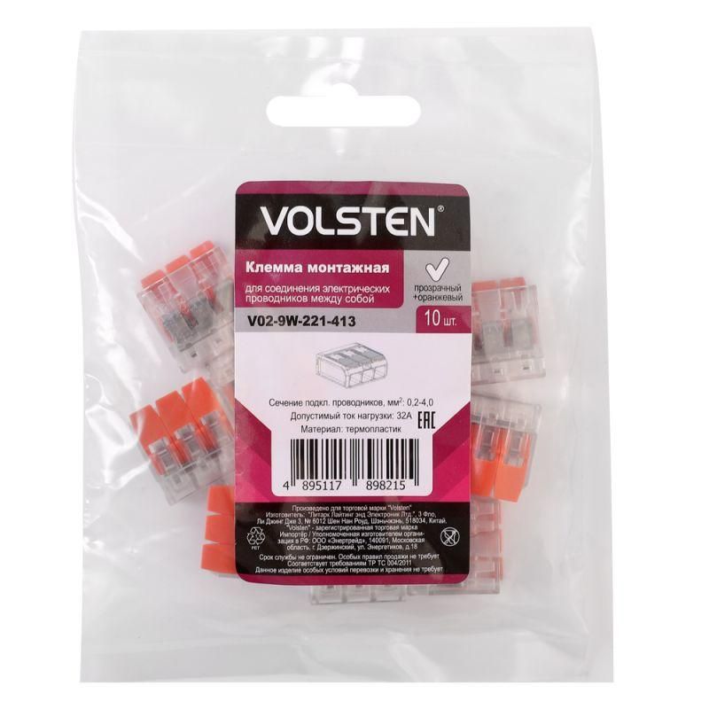 | Клемма строительно-монтажная СМК 3 пр. до 4мм 32А 450 В 10шт V02-9W-221-413 оранж. Volsten 15235 | 12.03.2026 | 14800 шт. | 16,98 ₽ | шт. | от 6 дней |
