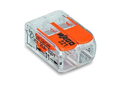 Клемма универсальная 2-проводная 0.2–4 мм2 с рычагами прозрачный корпус от WAGO (артикул 221-412) - компактное и надёжное решение для быстрого соединения одножильных, многожильных и гибких проводов в распределительных коробках, пультах управления и оборудовании с ограниченным пространством.