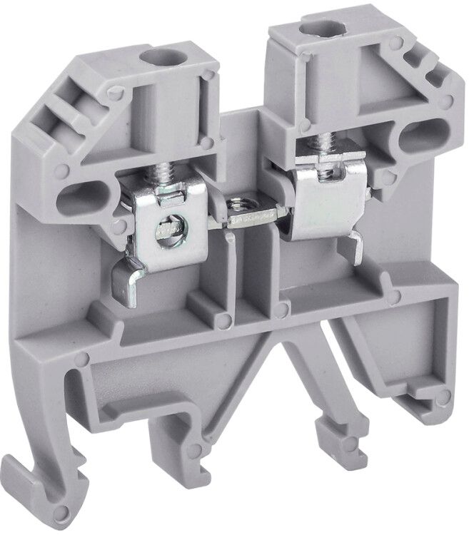 Клемма винтовая КВИ-2,5мм2 серая легко фиксируется на DIN-рейке 35 мм защёлкой. Монтаж выполняется вручную: клемму просто защёлкивают на рейку, затем ослабляют винт, вставляют подготовленный провод (без зачистки изоляции более чем на 8–10 мм) и затягивают до упора. Для многократного использования рекомендуется применять отвертку с регулируемым моментом. Обязательно используйте торцевую пластину при групповой установке - она предотвращает случайное касание соседних клемм и обеспечивает целостность изоляции всей секции.