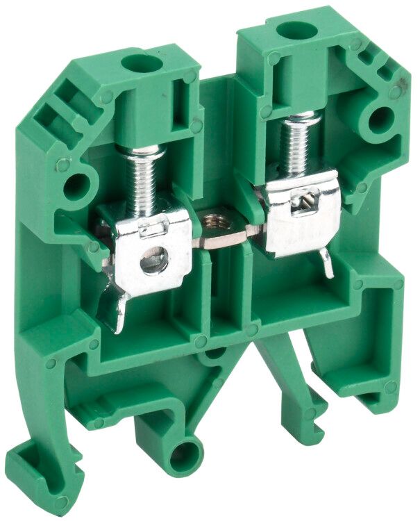 Клемма винтовая КВИ-4 мм2 зеленая от IEK - надежное винтовое соединение для фиксации проводов сечением 1,5–6 мм2 в электрощитах на DIN-рейке. Цвет зеленый соответствует стандарту PE, что делает её подходящей для защиты от поражения током.