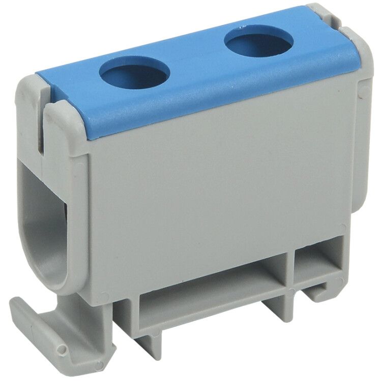Клемма вводная силовая 6-50 кв.мм синяя КВС совместима с любыми устройствами, установленными на DIN-рейке 35 мм. Для монтажа достаточно защёлкнуть её на рейку - никаких инструментов не требуется. Соединение выполняется винтом: ослабьте зажим, вставьте подготовленный провод (обязательно зачистите изоляцию, не более чем на глубину зажима), затяните винт до упора. Не используйте инструменты с острыми гранями - можно повредить контактную поверхность. Максимальный момент затяжки не указан производителем - соблюдайте умеренную силу, чтобы не деформировать пластик.
