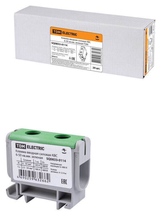 | Клемма вводная силовая КВС 6-50 кв.мм. зеленая | SQ0833-0114 | TDM | 03.03.2026 | Под заказ | 133,49 ₽ | шт. | от 30 дней |