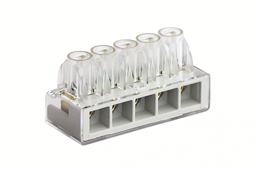 - Пружинный зажим позволяет быстро вставлять и извлекать проводники без отвертки